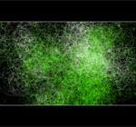 I experimented with three different predominant colors (green, red, and blue) and with a neutral color, white, generating three images in high resolution (100×70 cm) that represent the interconnection of two complex networks.